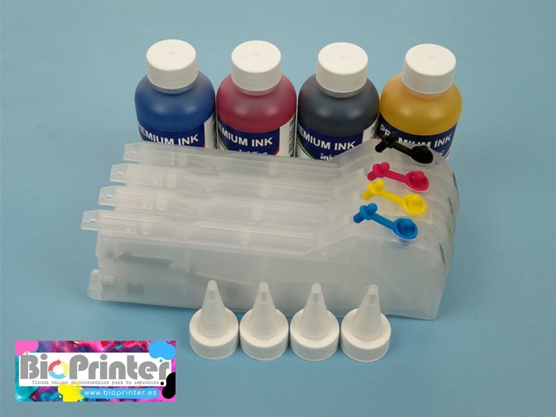Pack 4 cartuchos recargables Alta Capacidad vacíos y autoreseteables BioPrinter con tinta de sublimación, compatibles con impresoras Brother que utilicen cartuchos LC123 LC125.