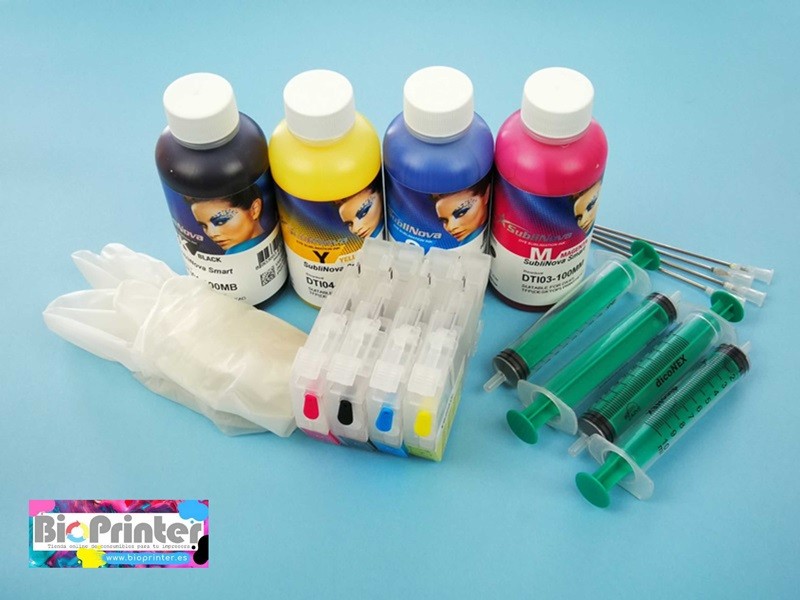 Pack 4 cartuchos recargables vacíos BioPrinter con tinta de sublimación, compatibles con impresoras Brother que utilicen cartuchos LC980 LC1100.