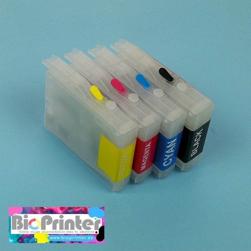 Pack 4 cartuchos recargables vacíos BioPrinter, compatibles con impresoras Brother que utilicen cartuchos LC960LC970 LC1000. Ideal para casa, estudiantes, oficinas, profesionales... utilizando nuestros cartuchos recargables reducirás notablemente los costes de impresión con la misma calidad.