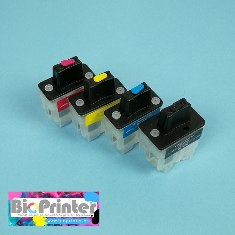 Pack 4 cartuchos recargables vacíos BioPrinter, compatibles con impresoras Brother que utilicen cartuchos LC900. Ideal para casa, estudiantes, oficinas, profesionales... utilizando nuestros cartuchos recargables reducirás notablemente los costes de impresión con la misma calidad.